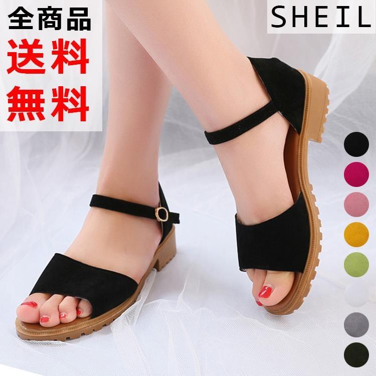 ローヒールサンダル レディース ぺたんこ 太ヒール アンクルストラップ 大きいサイズ 夏 海 福袋対象商品 Xqi 001 Sheil 通販 Yahoo ショッピング